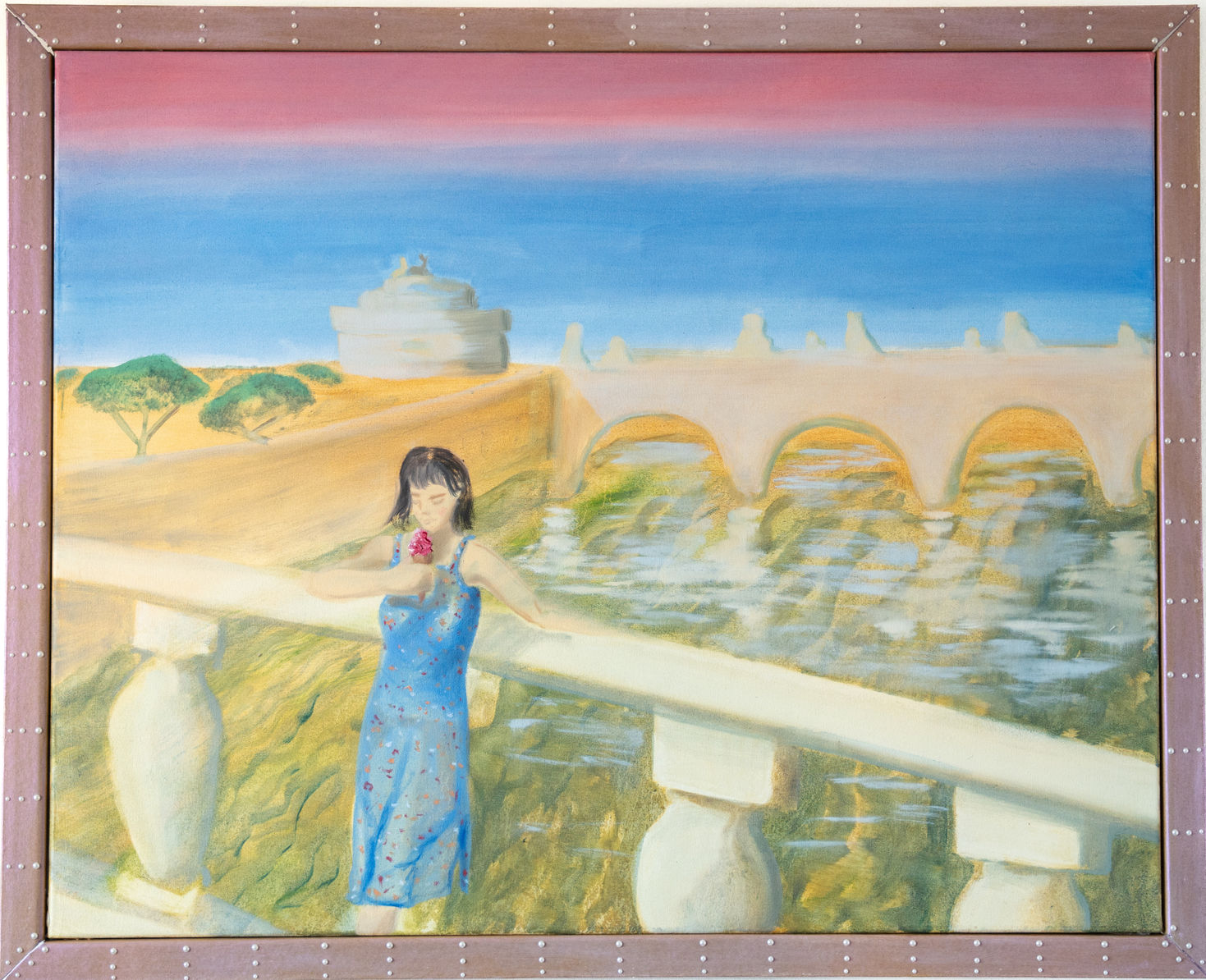 Her practice involves making paintings based on her own poetry, often depicting everyday subject matter infused with lyricism. Beatriz uses paper mâché frames, ornamental jesmonite sculptures, ceramic tiles, found objects and mural trompe l’oeil devices to unpack intimacy, humour, sadness and longing. Having completed an English BA at Clare College, Cambridge, Beatriz went on to study Art History at The Courtauld Institute of Art. She graduated in 2024 with a Painting MA (distinction) from the Slade School of Fine Art, UCL. She is the winner of the 2023 Richard Ford Award and the Slade’s 2024 Dolbey Travel Award.