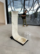 To our surprise, we felt that this year's BA show at CSM was stronger than that of its MA counterpart. We were particularly impressed by Held In The Making, a curated room bringing together works by graduates whose practice focused on materiality and space. Wood works and wall displays have gained popularity across colleges this year in general, but we especially enjoyed the beautifully executed hanging and mounted wood carvings by Franklin Collins included in this section. An added bonus was that the audience was not only allowed, but encouraged to interact with Collins’s work, which had a distinctly tactile quality with the smooth finishes and beautifully carved hand imprints. This piece was in perfect synergy with other installations in the room, notably Miles Graham’s serene and playful still lifes, and Bobbie Rivers’s stunning mesh panels, Bedside II, 163. Other highlights from the CSM undergraduate show included Angel Dan Rong’s playful ceramic pigeons and Uma Dehaan’s oil painting, Fire/ Ribbons In The Living Room, exploring different forms of abstract mark-making.